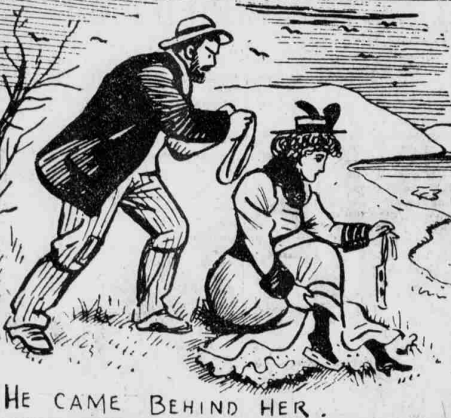 Rosa told how on the Sunday she had skipped church to go skating. She thought that the ice looked unsafe on the pond near her home, so she walked to another pond three quarters of a mile away. As she sat on the grass to put her skates on, a man approached her from behind, blindfolded her and demanded money. Rosa had none, and the stranger swore and cursed her dreadfully. He then tied her hands behind her back, saying ‘If you scream, I will shoot you.’[vi]