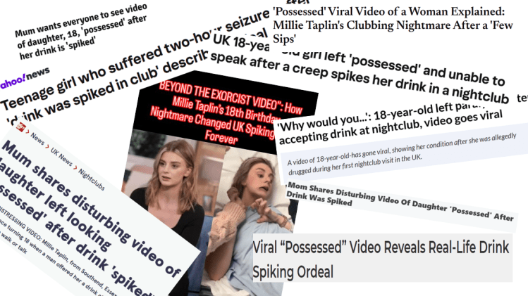 Millie’s mother released a shocking video of her daughter taken while she was in hospital after the alleged spiking incident. The story of Millie Taplin has been all over the international media this week along with lurid headlines about demonic possession, paralysis, malevolent strangers and drug-induced horrors so you’d be forgiven for thinking this was news. In fact, it happened in 2021.[i]